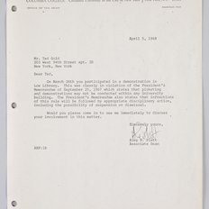 Associate Dean, Alex B. Platt to Columbia College student Ted Gold, April 5, 1968