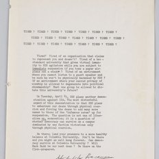 Students for Free Campus announcing their counter-protest to the SDS sponsored rally at the Sun Dial on Tuesday, April 23, 1968. Typewritten circular.