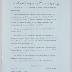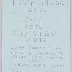 Blue circular, hand written advertising campaign to remove ROTC from college campuses