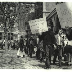 Protest outside Hamilton Hall against Marine Corps recruiting on campus, April 21, 1967.