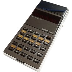 A prototype model of the Sinclair Enterprise calculator. This four-function calculator included percentage, memory, and square root functions. Released in October 1977, the following year Sinclair Radionics produced a programmable version.